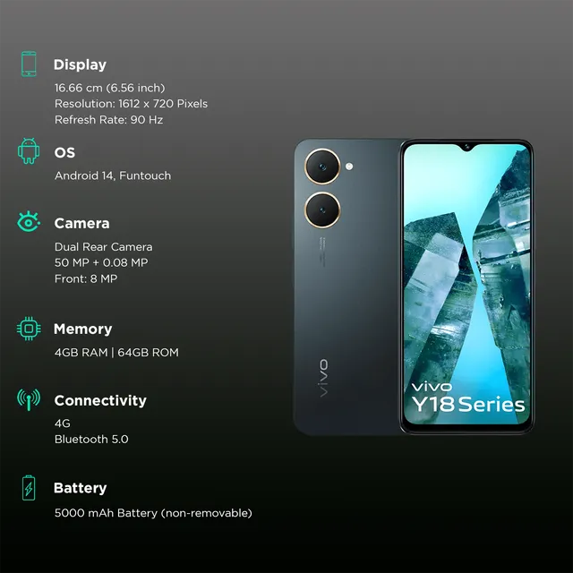 Vivo Y18 (Space Black, 4GB + 64GB)